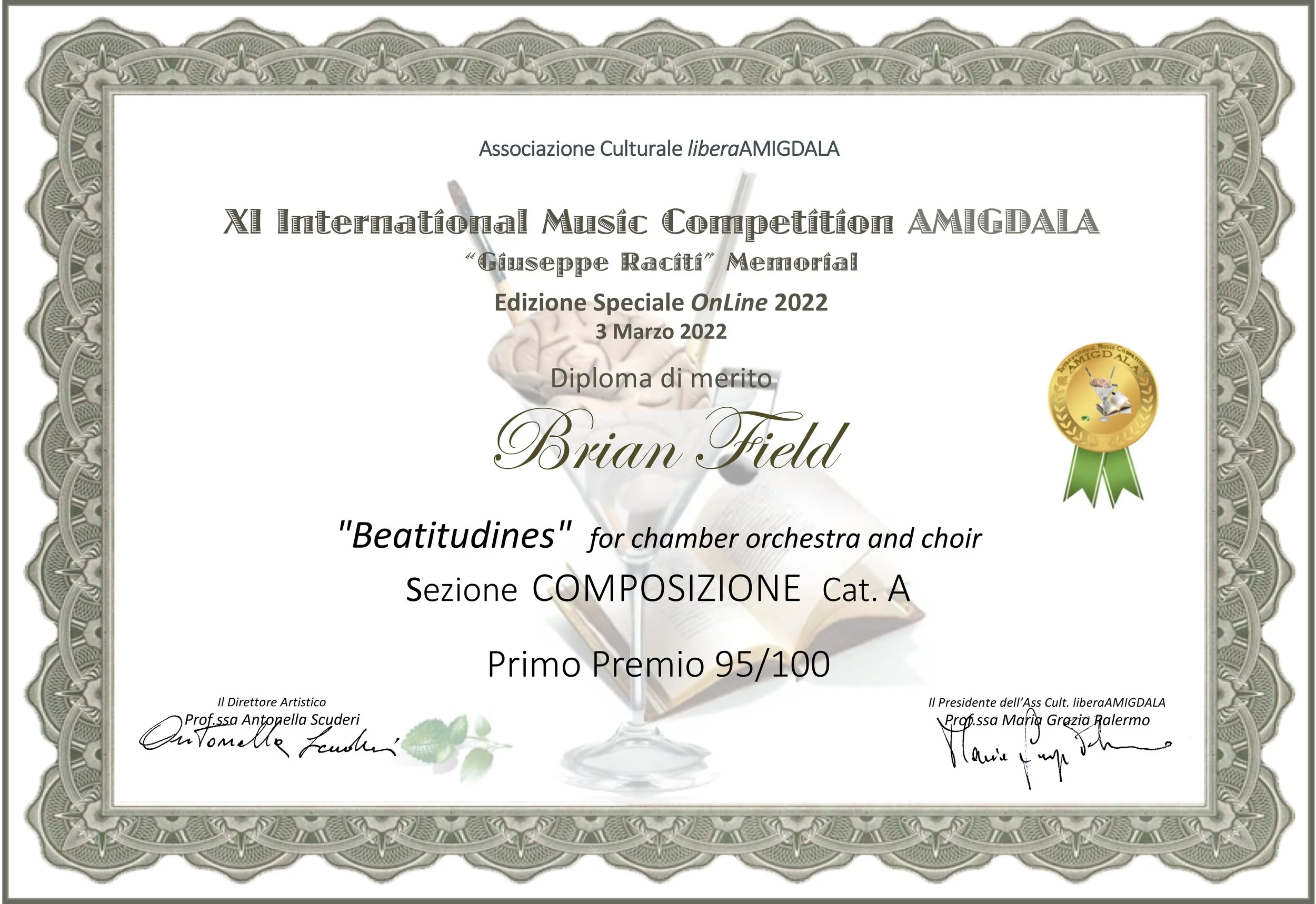 This morning I was awarded First Prize in the XI Amigdala International Music Competition memorial "Giuseppe Raciti" for my work for chorus and orchestra “Beatitudines”. This is very bittersweet; the piece which is based upon Jesus’ Sermon on the Mount—offering blessings on the peacemakers—was premiered in Lviv, Ukraine two years ago. I’ve attached here the performance from Lviv, and pray that the violence happening there resolves quickly and as peacefully as possible.